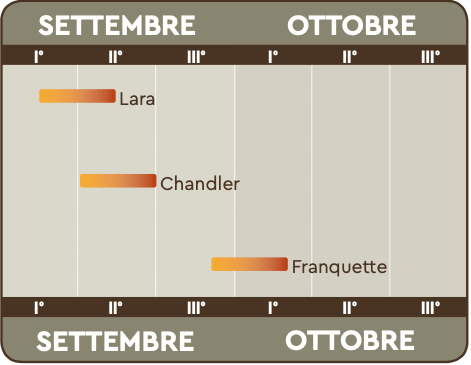 Qui troverete schematizzate le diverse epoche di maturazione di tutte le varietà di noci presenti nel nostro catalogo